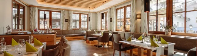 Unser á la carte-Restaurant „Alpenrose“ vereint alpine Gemütlichkeit mit feiner Küche. Genießen Sie regionale Spezialitäten, liebevoll zubereitet aus besten Zutaten kombiniert mit stilvollem Ambiente mit herzlichem Service. Ein kulinarisches Erlebnis für Genießer.